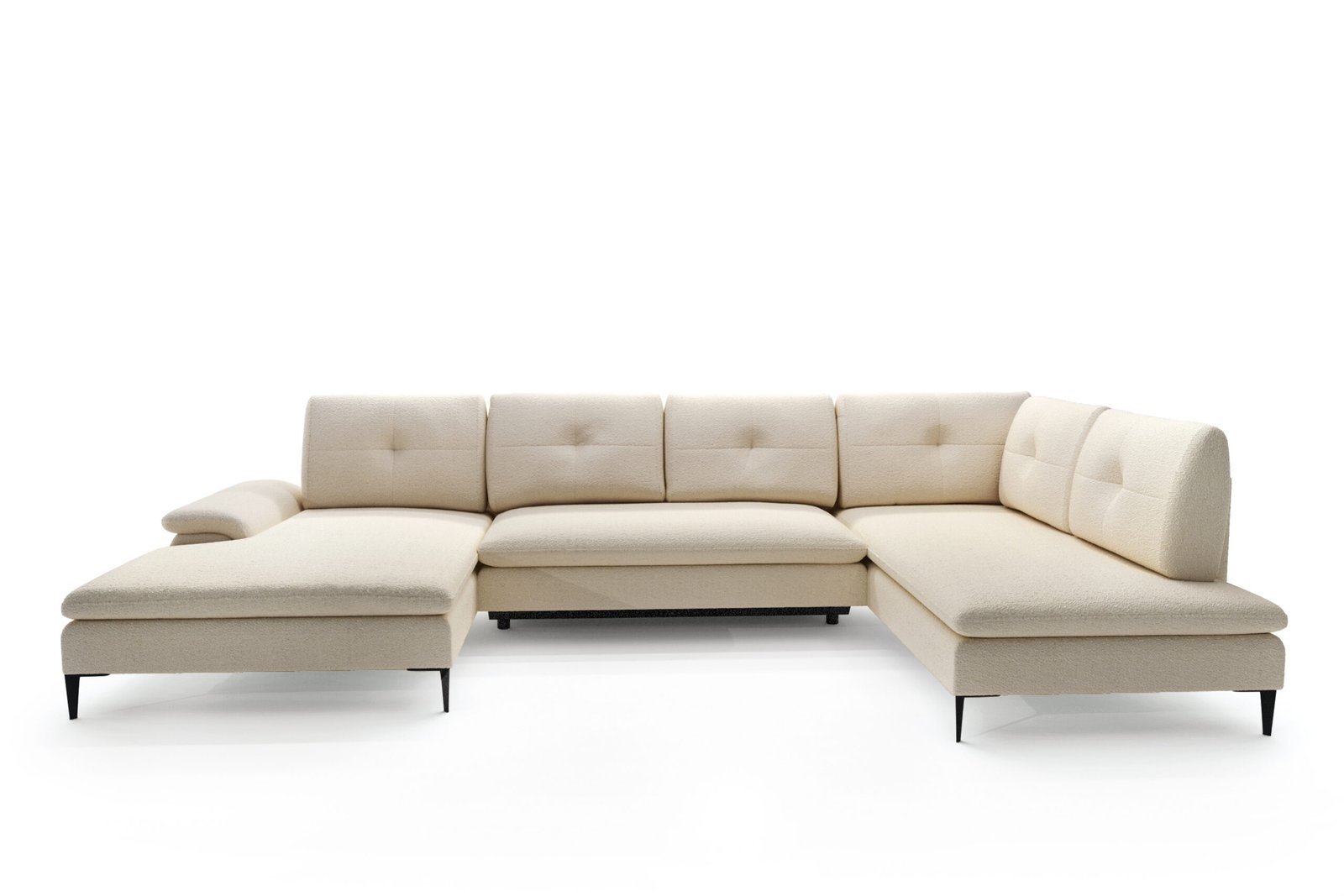 ADRIANA U – tai išskirtinio dizaino U formos minkštas kampas, sukurtas patogumui ir stiliui. Jo elegantiškos formos, šviesus audinys bei dekoratyvinės siūlės suteikia baldui subtilios prabangos, o didelė sėdima erdvė leidžia mėgautis poilsiu su šeima ar draugais. Šis modelis puikiai tinka modernaus ar klasikinio interjero svetainėms.