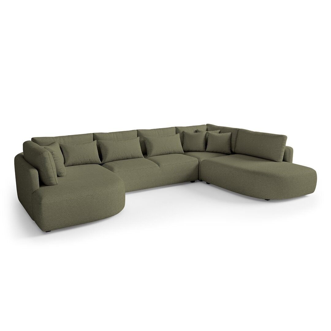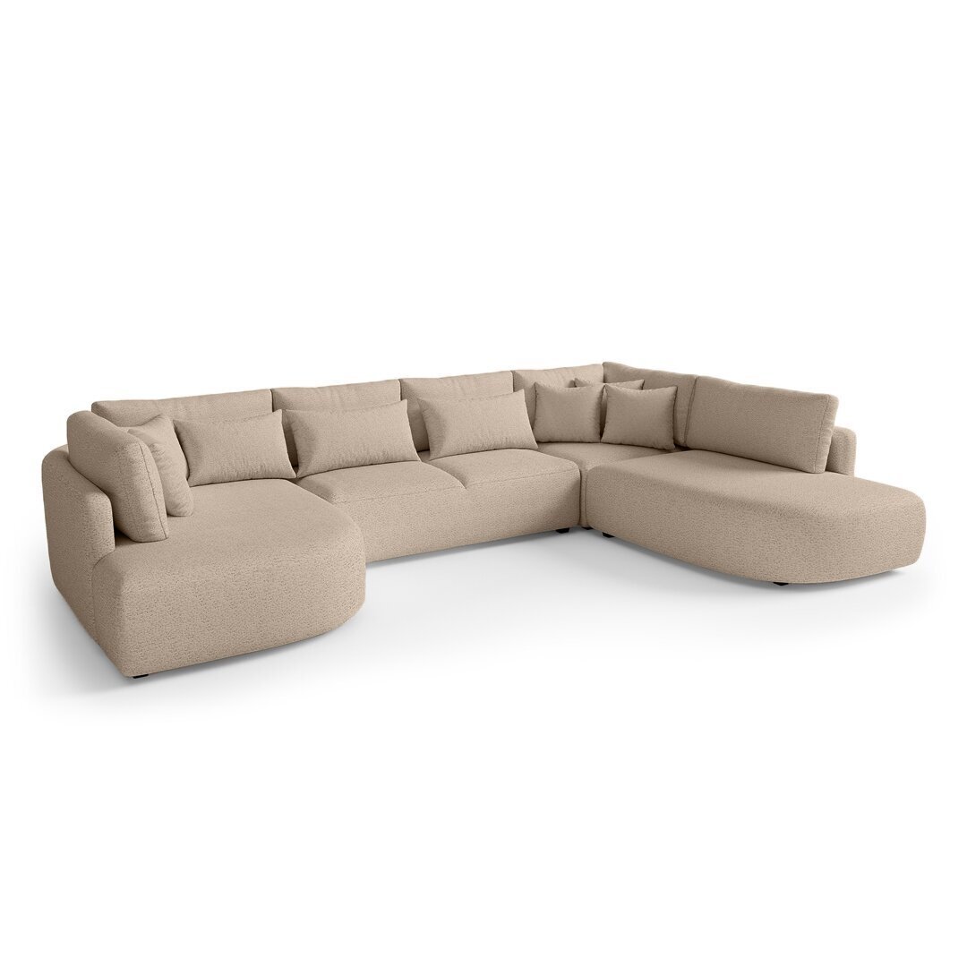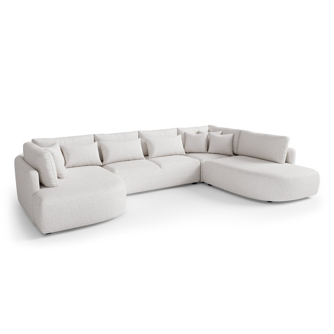 Minkštas kampas ALUNA U – modernus, itin komfortiškas ir elegantiškas baldų dizaino sprendimas jūsų svetainei. Šio modelio išskirtinumas – apvalintos formos, gilios sėdimosios pagalvės ir plačios atramos, suteikiančios maksimalų patogumą poilsiui. Kampas neturi miego funkcijos, todėl išlaiko vientisą, stilingą formą ir išskirtinį vizualinį lengvumą.