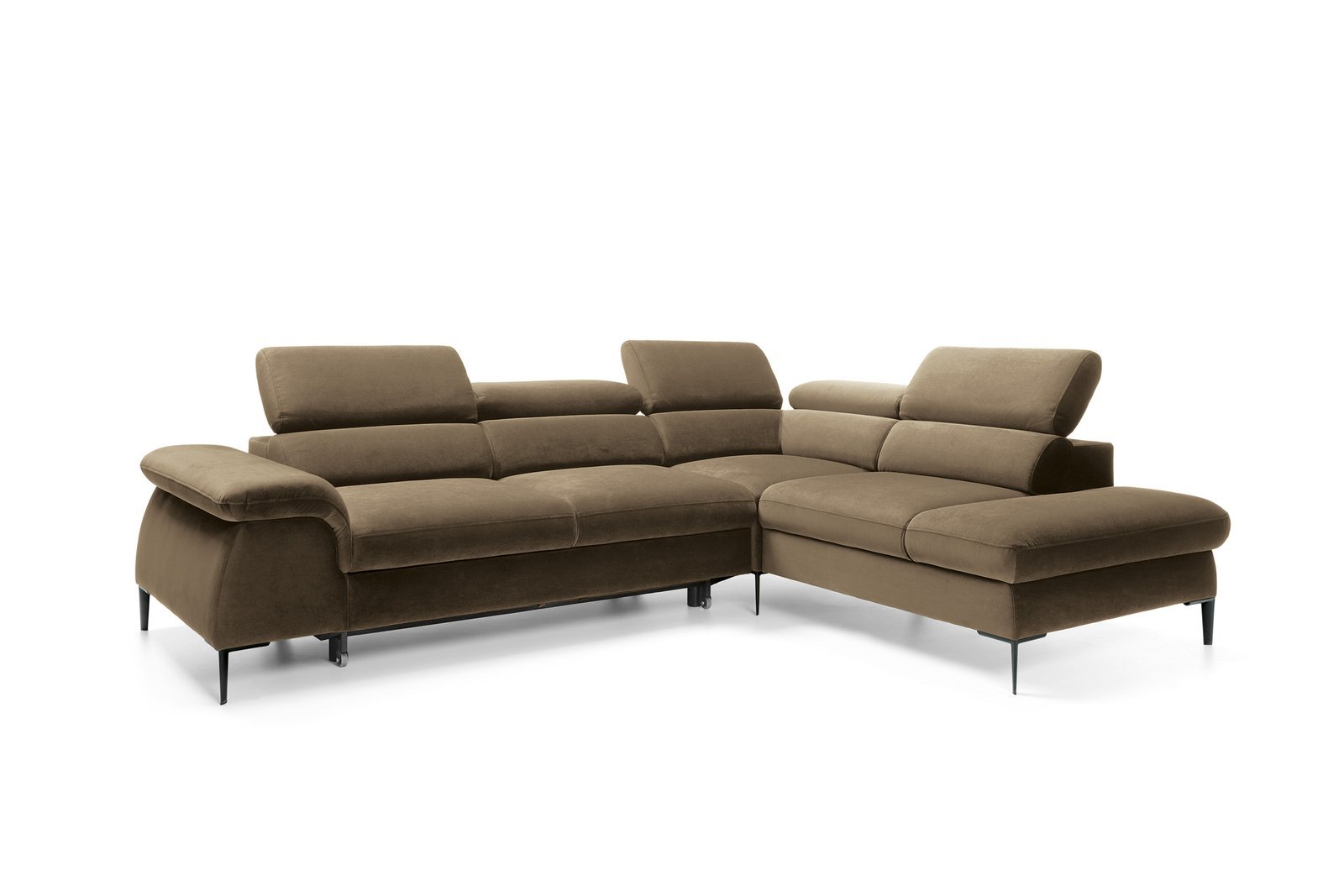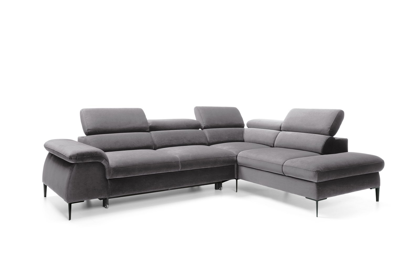 ASTRID L – tai šiuolaikiško dizaino minkštas kampas, sukurtas maksimaliam komfortui ir estetinei harmonijai. Švarios linijos, subtilūs siuviniai ir aukštos metalinės kojelės suteikia baldui prabangos įvaizdį. Reguliuojamos galvos atramos leidžia pritaikyti kampą pagal individualius poreikius, o miegamoji funkcija užtikrina praktiškumą kasdien.