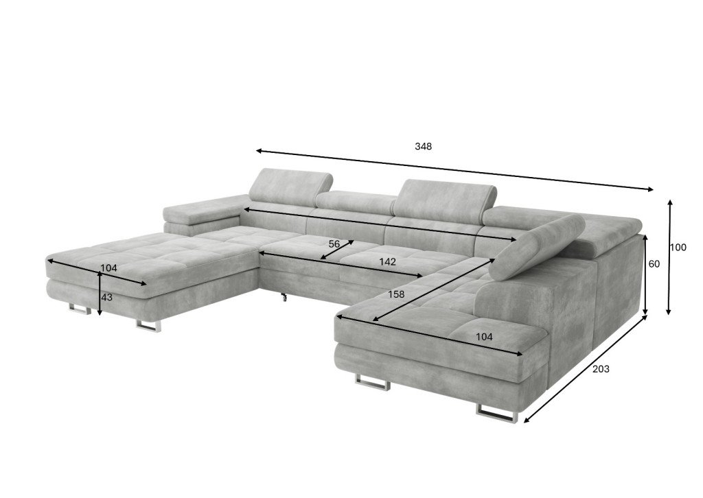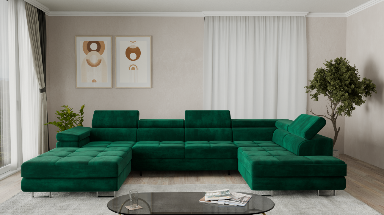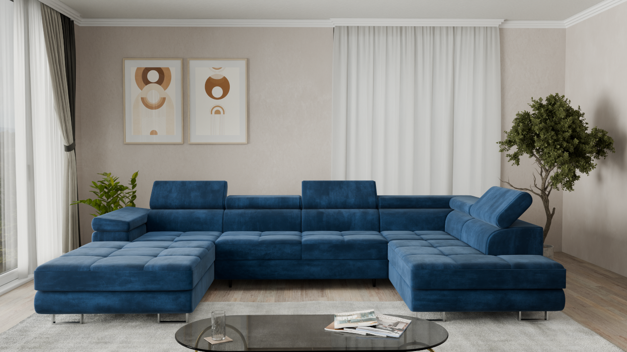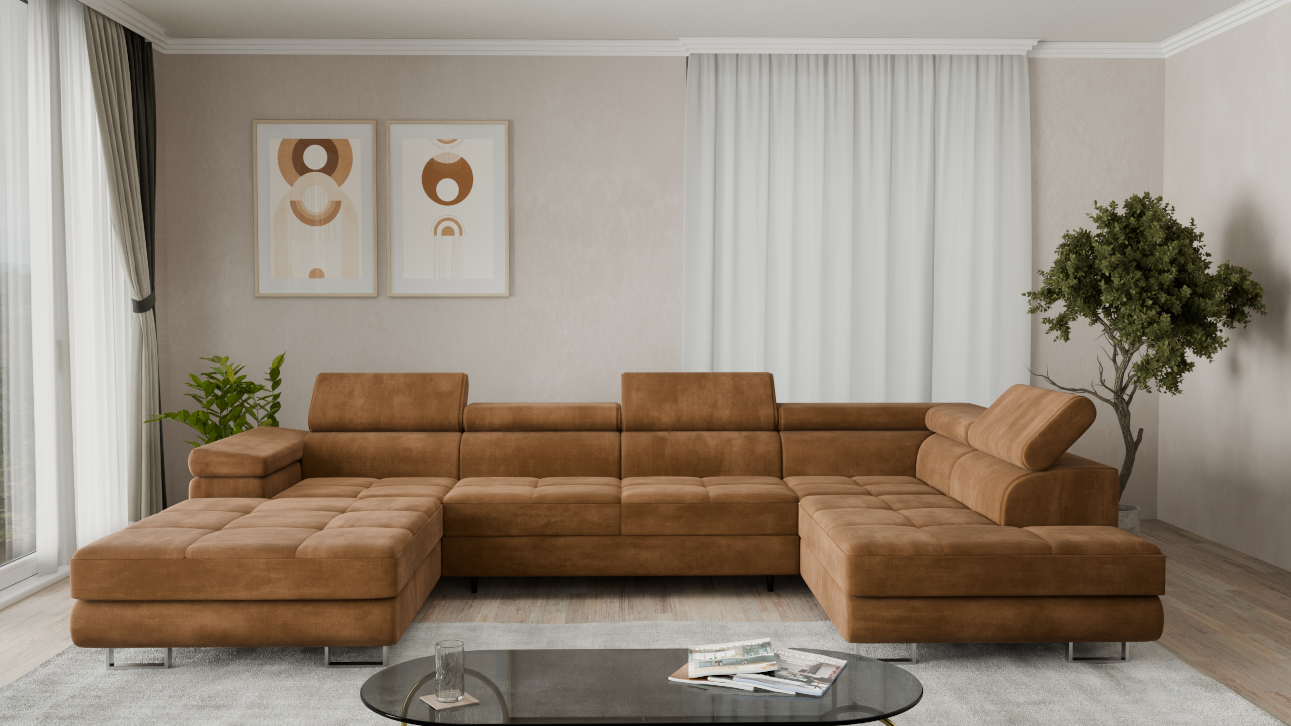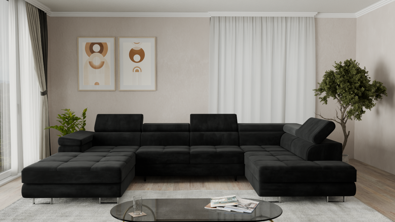 Comfort U – tai modernus U formos kampas, sukurtas tiems, kurie ieško maksimalaus patogumo ir universalaus funkcionalumo. Dėl didelės sėdimosios dalies bei įspūdingo miegamojo ploto šis modelis puikiai tiks erdvioms svetainėms – jis taps šeimos susibūrimų širdimi, poilsio vieta po ilgos dienos ar patogia lova svečiams.