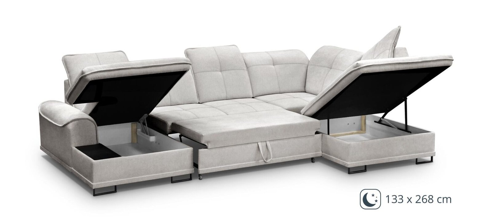 Minkštas kampas DEVONA U – tai idealus pasirinkimas šeimai ar svečiams priimti. Komfortas, funkcionalumas ir šiuolaikinis dizainas – viskas, ko reikia Jūsų namų jaukumui.