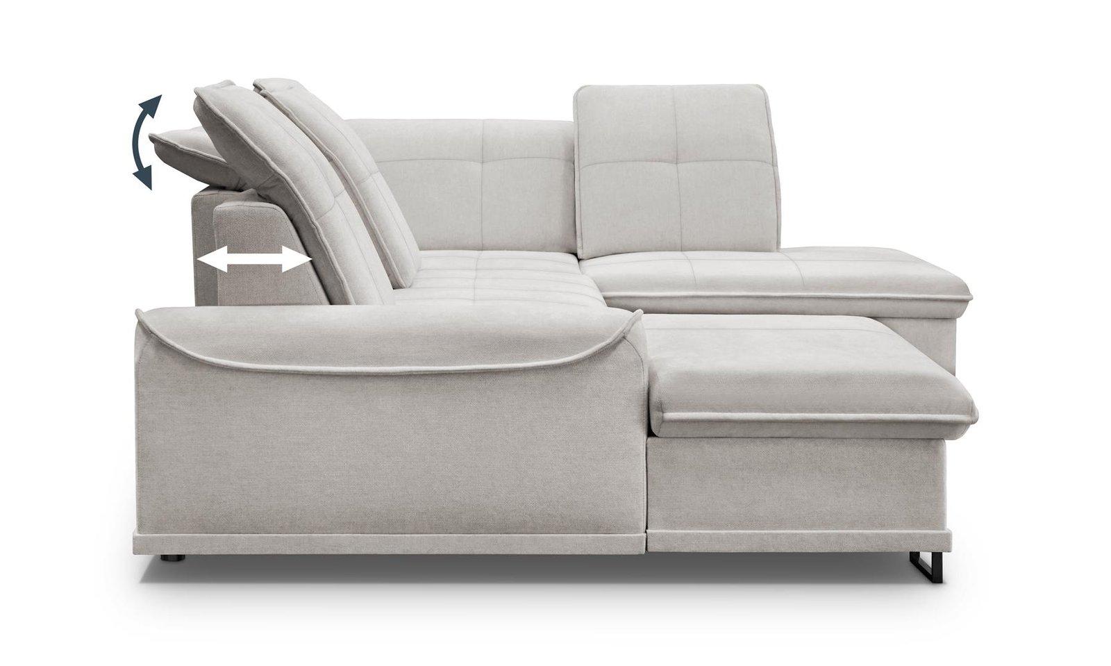 Minkštas kampas DEVONA U – tai erdvus, modernus ir itin komfortiškas baldas, puikiai tinkantis didesniems gyvenamiesiems kambariams. Jo elegantiškas dizainas, aukšti reguliuojami atlošai ir patogios sėdimosios pagalvės sukuria prabangų poilsio pojūtį kiekvieną dieną.