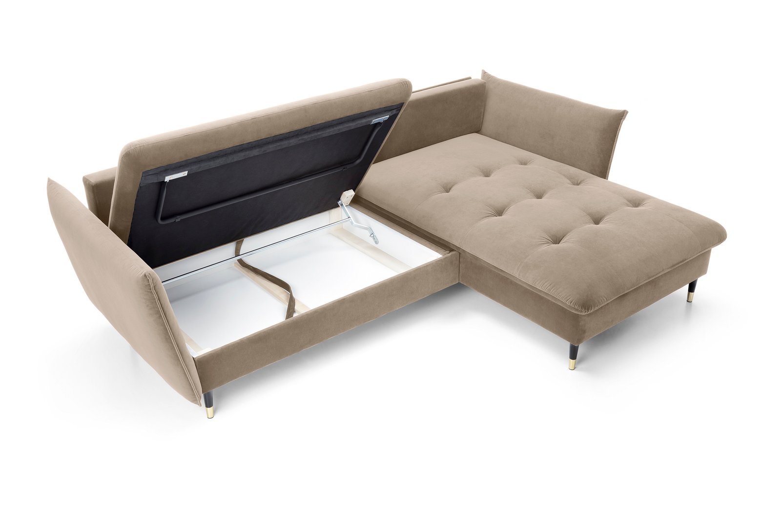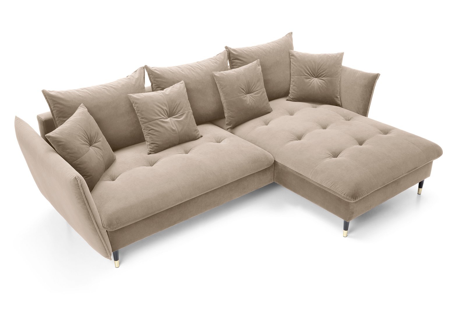 FIORA – tai šiuolaikiško dizaino, itin komfortiškas minkštas kampas, kuriame dera subtili elegancija ir praktiškumas. Švelnus smėlio atspalvis, minkštos pagalvėlės ir lengvos formos suteikia svetainei jaukumo bei prabangos pojūtį. Tai puikus baldas tiek kasdieniam poilsiui, tiek svečių priėmimui.