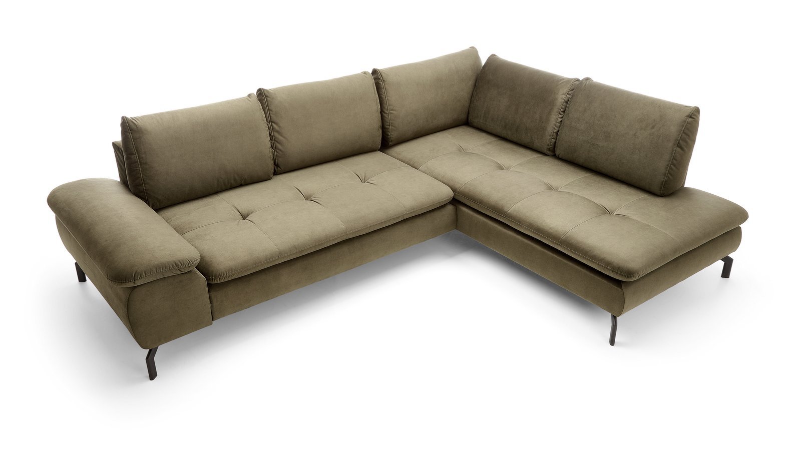 FRIDA L – tai stilingas ir funkcionalus minkštas kampas, pasižymintis minimalistiniu dizainu bei aukštu komforto lygiu. Subtilus alyvuogių žalios spalvos atspalvis suteikia interjerui natūralumo ir jaukumo, o tvirtos metalinės kojelės prideda modernumo bei stabilumo. Šis kampas puikiai tinka tiek kasdieniam poilsiui, tiek svečių apgyvendinimui.