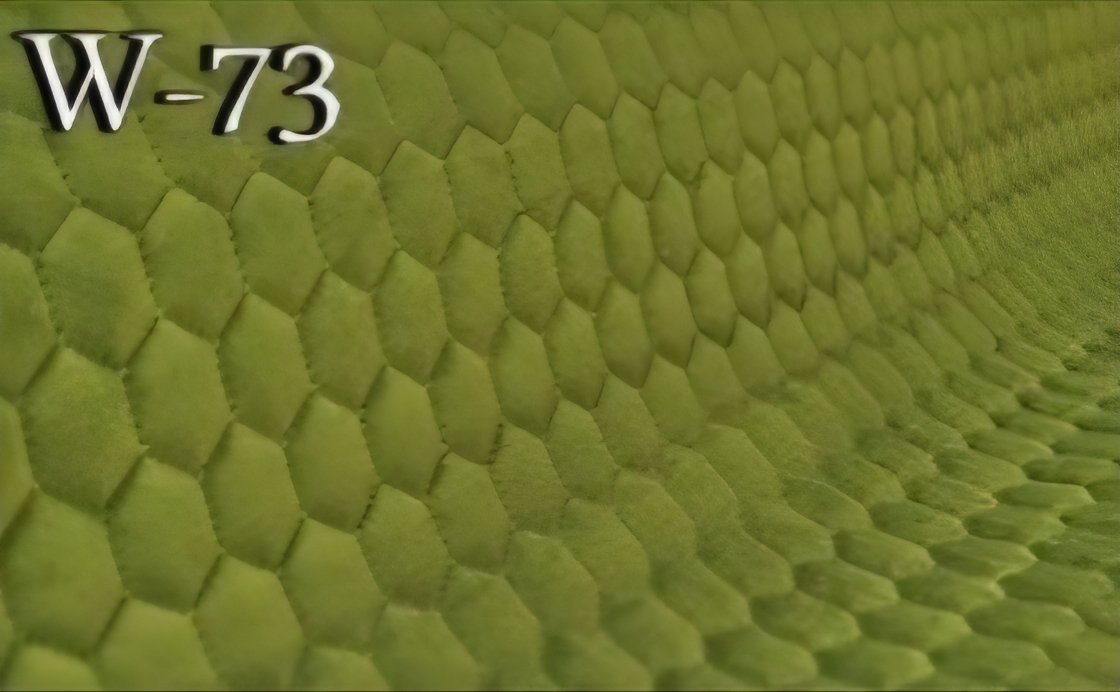 Velūrinis / pliušinis audinys. Labai malonus liesti, su dekoratyviniu dygsniavimu – šešiakampio raštas (kraštinės ilgis 2 cm).