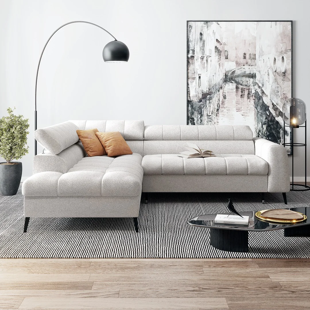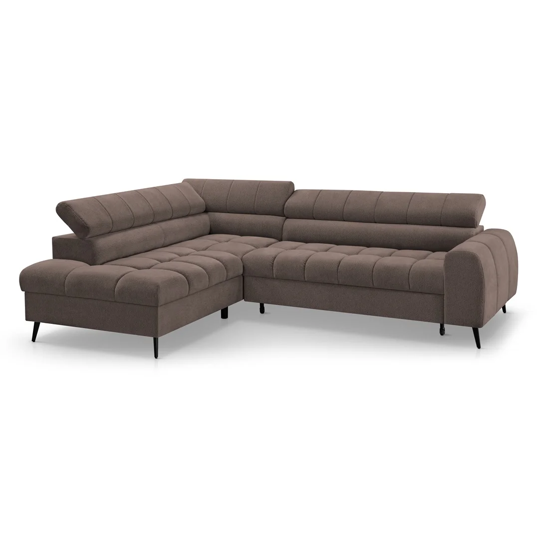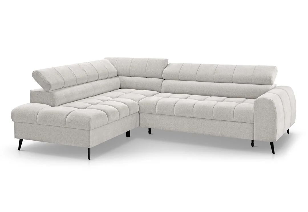 Minkštas kampas MALMO L – modernus kampas su miego funkcija ir patalynės dėže