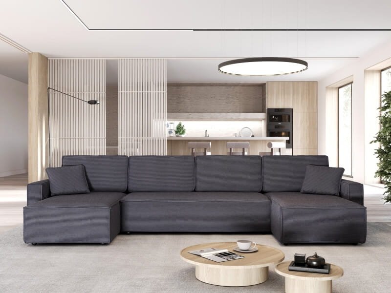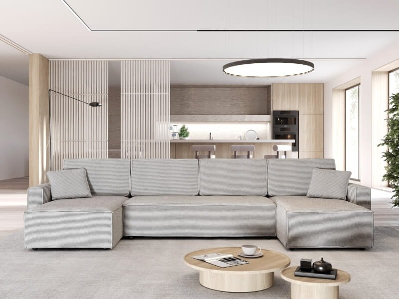 Tai sofa U formos, kurioje patogiai įsitaisys visi šeimos nariai ar svečiai.