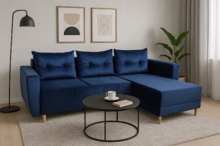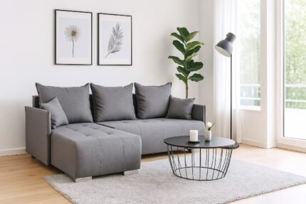 - Erdvumas – kampo išmatavimai 265 × 265 cm puikiai tinka didesnei svetainei.