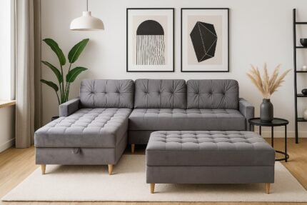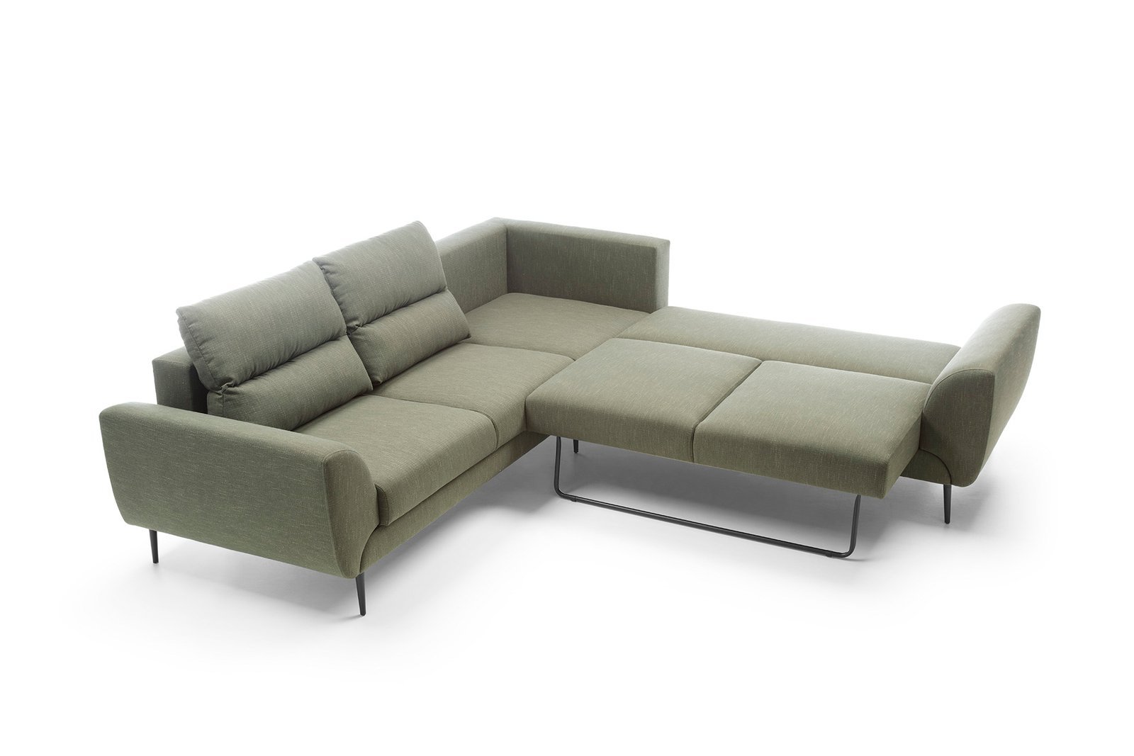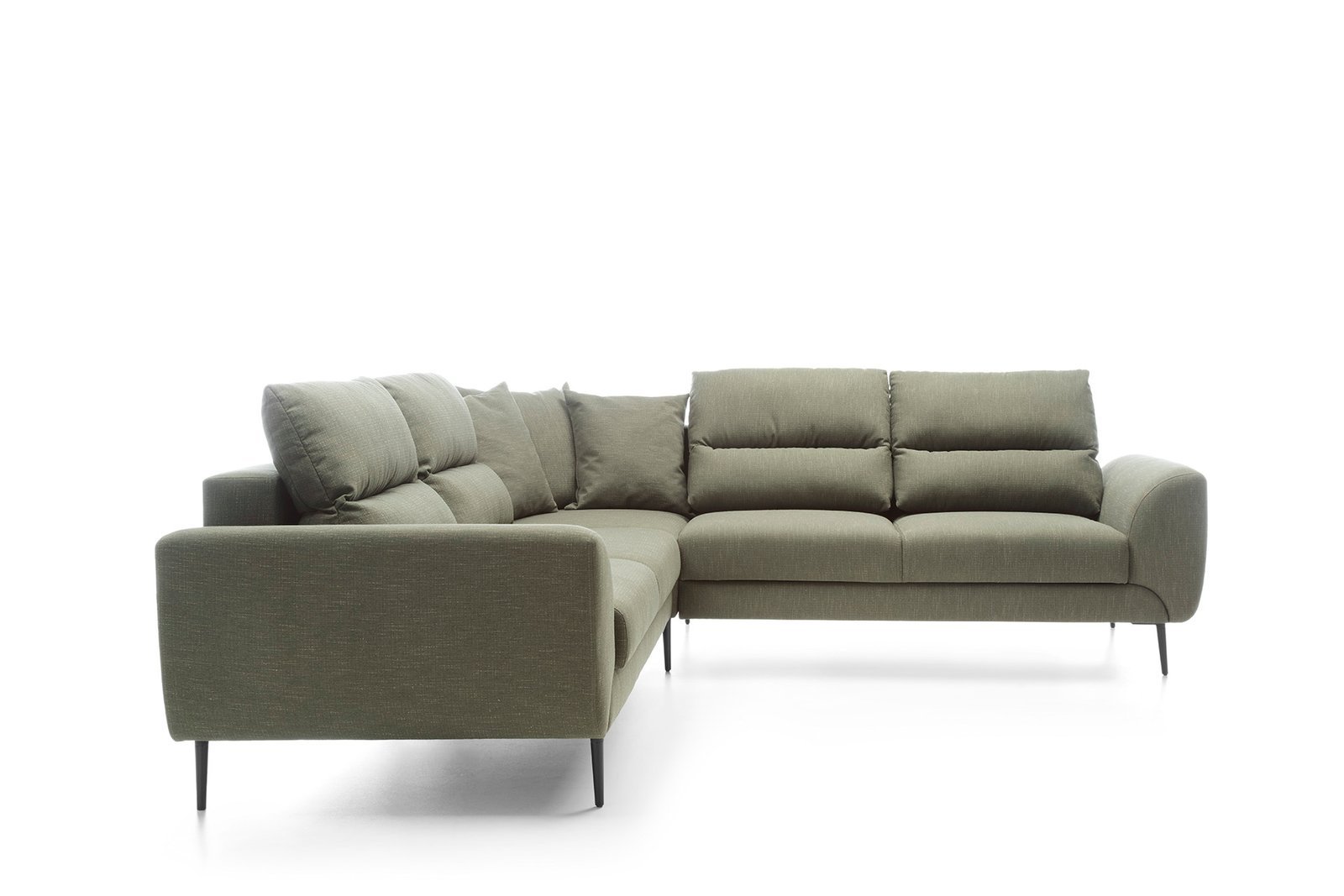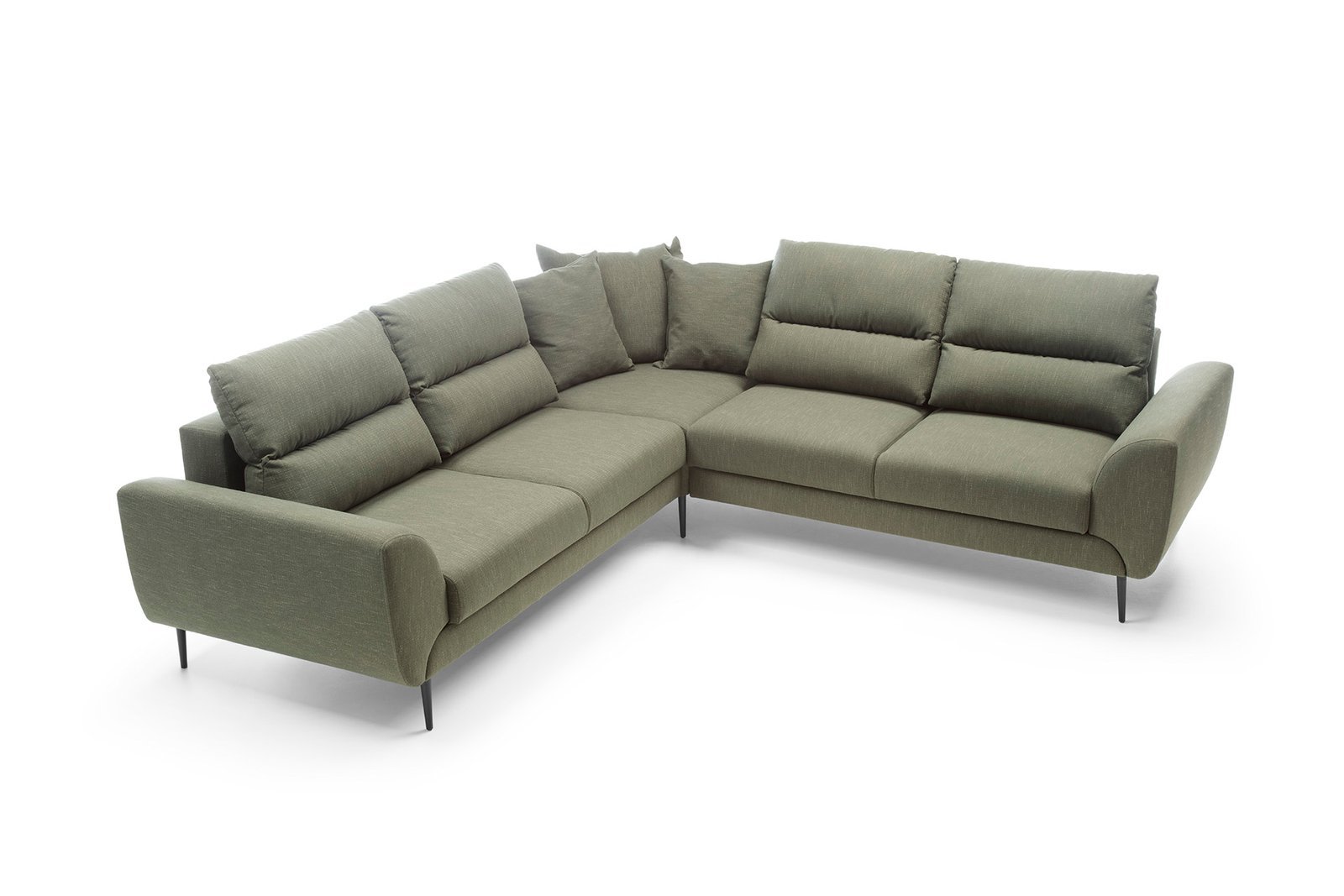 SUBLIME – tai šiuolaikiškas minkštas kampas, sukurtas komfortiškam poilsiui ir moderniam interjerui. Didinga forma, minkšti atlošai bei ergonomiški porankiai užtikrina jaukumą, o tvirta konstrukcija leidžia mėgautis šiuo baldu daugelį metų. Nuotraukoje pateiktas modelis žalsvos spalvos – ji suteikia interjerui natūralumo ir ramybės pojūtį.