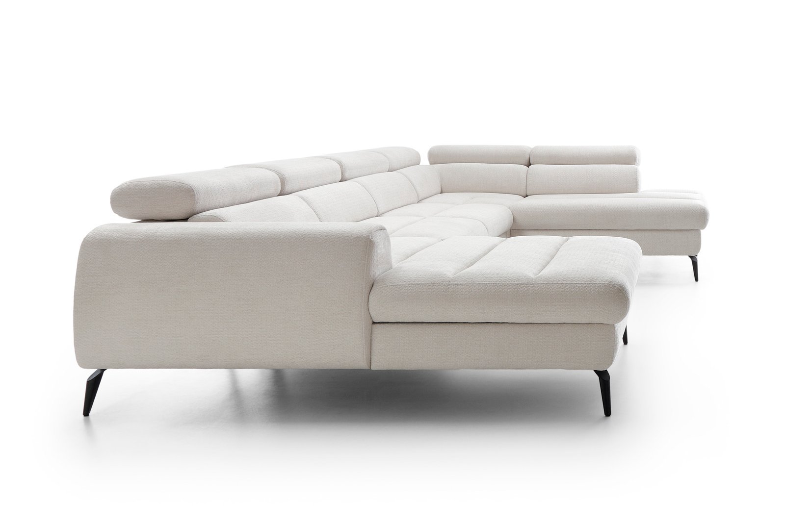 TINDRA U – tai elegantiškas ir funkcionalus U formos minkštas kampas, sukurtas išskirtiniam komfortui bei šiuolaikiškam interjerui. Šviesus audinys, modernios formos ir subtiliai išlenkti atlošai suteikia baldui lengvumo, o reguliuojamos galvos atramos leidžia mėgautis poilsiu individualiai pritaikant sėdėjimo padėtį.