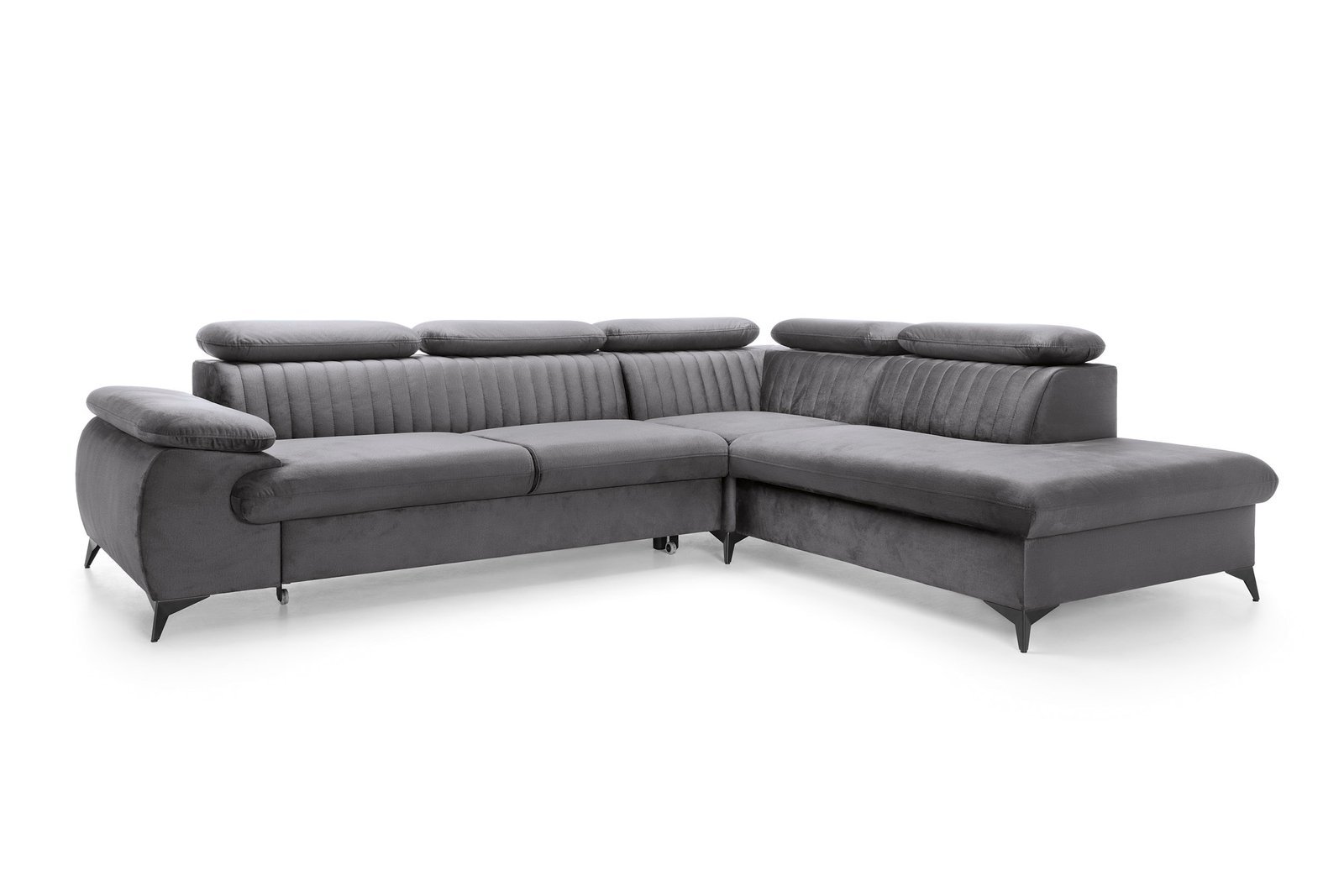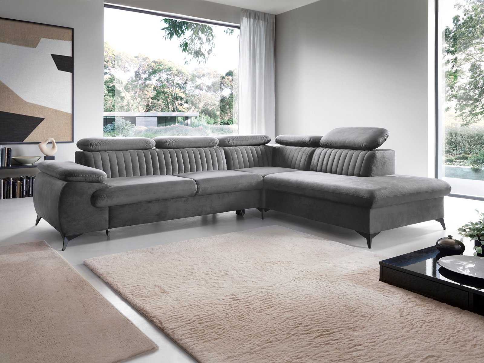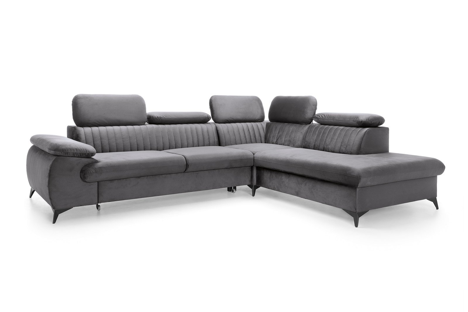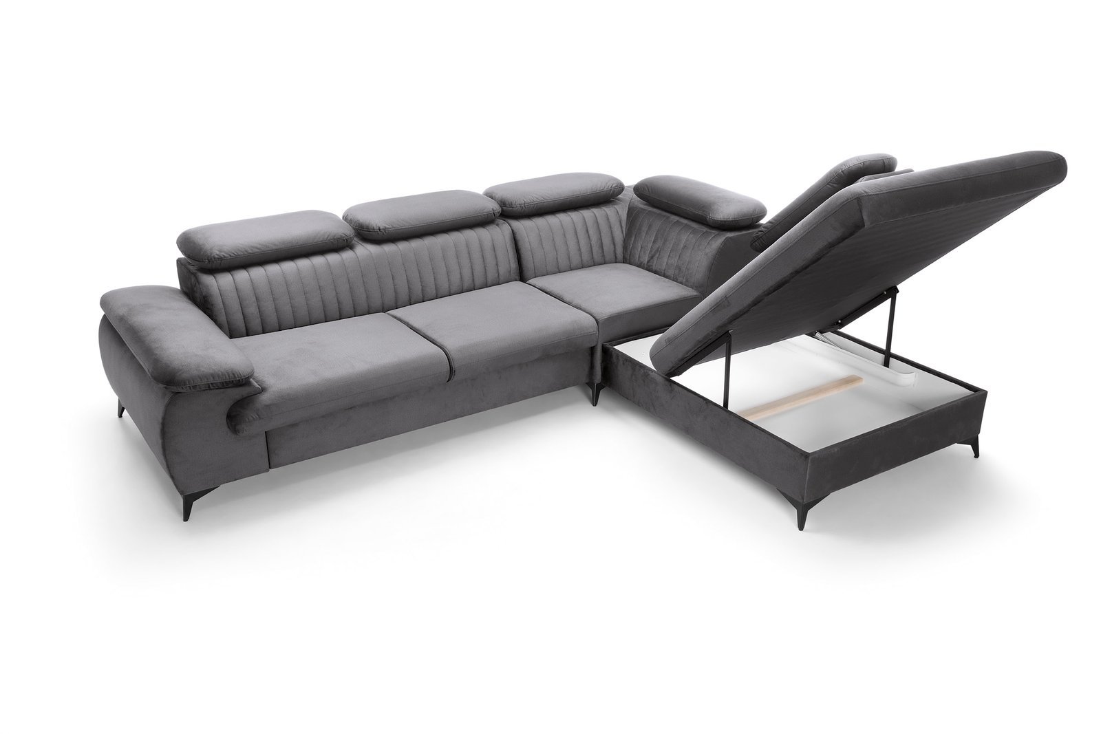 VIND L – tai šiuolaikiško dizaino minkštas kampas, sukurtas tiems, kurie vertina komfortą ir subtilų stilių. Jo plačios sėdimosios dalys, reguliuojamos galvos atramos ir dekoratyvūs siuviniai suteikia išskirtinį vizualinį efektą, o miegamoji funkcija ir patalynės dėžė – praktiškumą kasdieniam naudojimui.