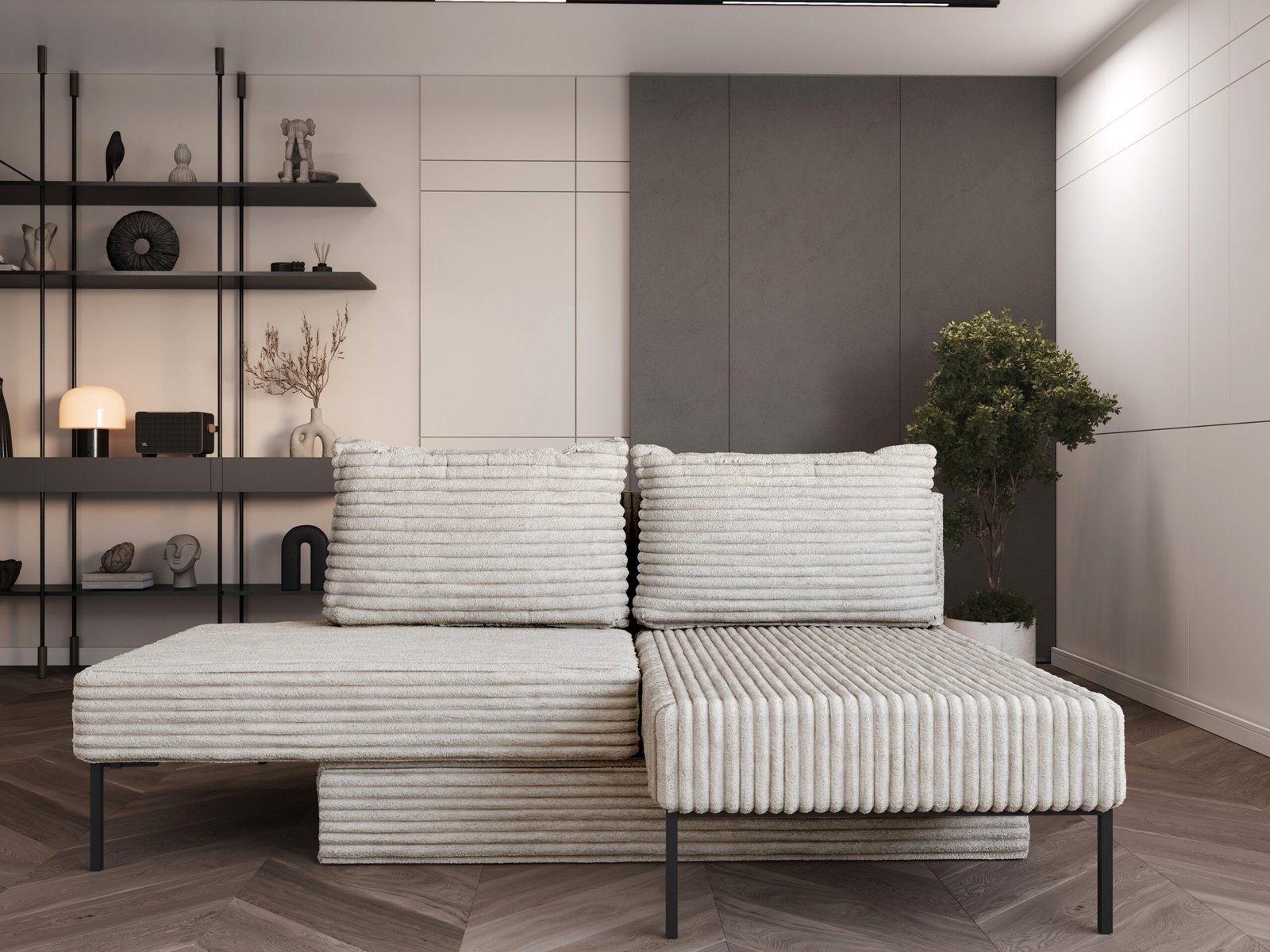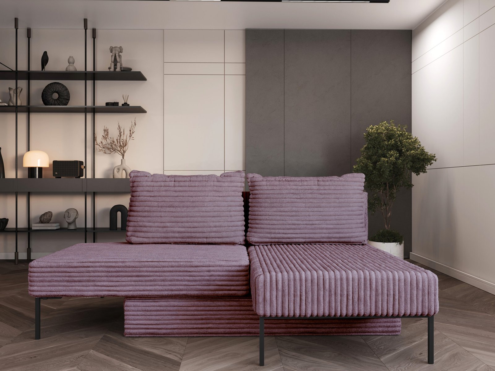 - ✅ 4 naudojimo būdai (4/1): sofa / lova / kampas / šezlongas