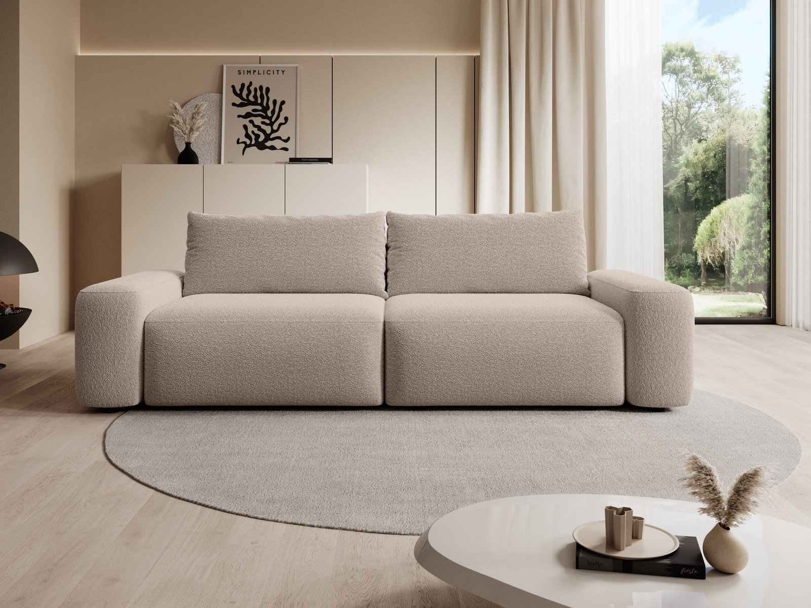 ORO – elegantiška, šiuolaikinio dizaino sofa, kuri sujungia rafinuotą išvaizdą ir ypatingą komfortą. Jos stambesnės formos, minkštas audinys ir neutrali šviesi spalva kuria išskirtinį jaukumo ir prabangos pojūtį. Tai baldas, kuris taps pagrindiniu akcentu jūsų svetainėje.