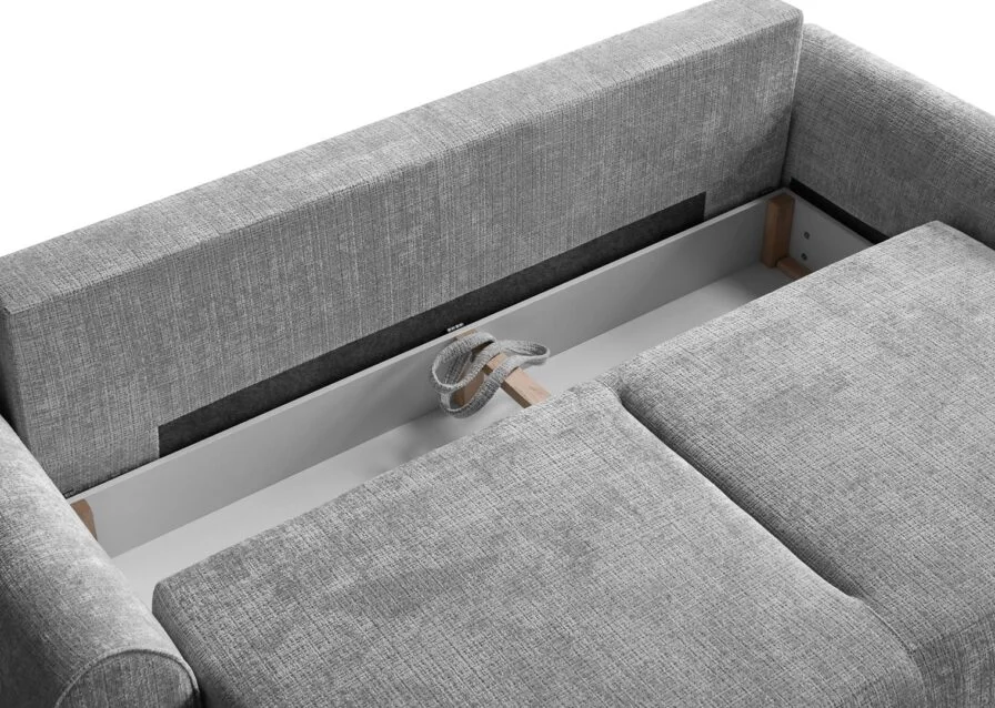 Dėl miego funkcijos ir patalynės dėžės ši sofa puikiai tinka svetainei ar svečių kambariui.
